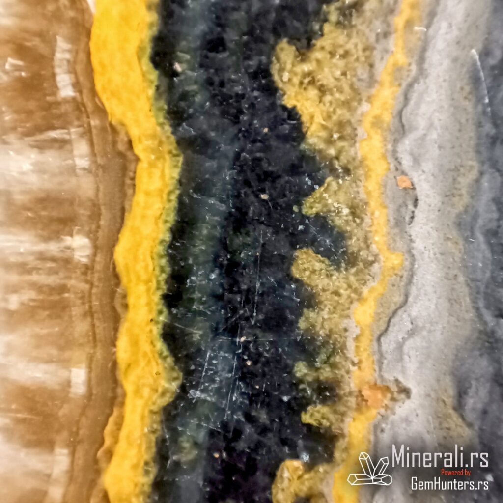 Slojevita struktura bumbar jaspisa od kalcita sa planine Papandajan, Indonezija