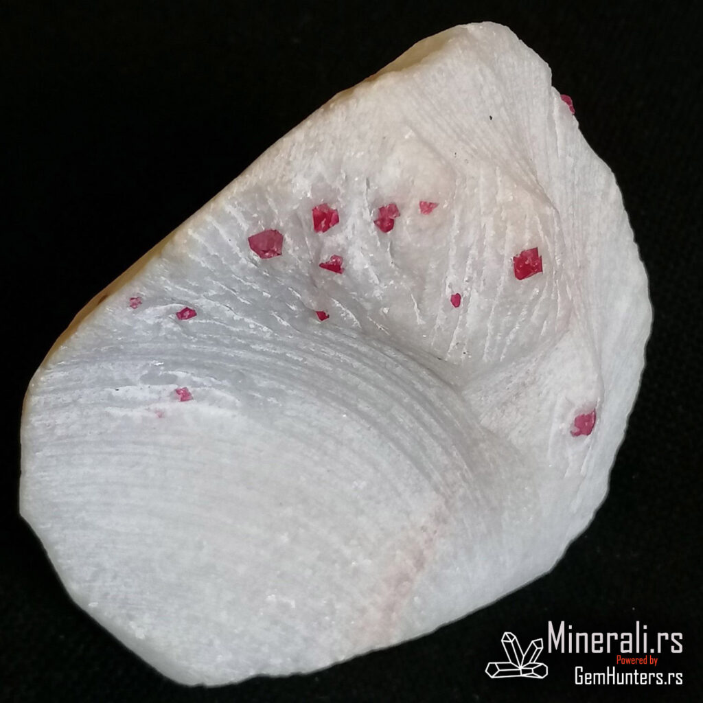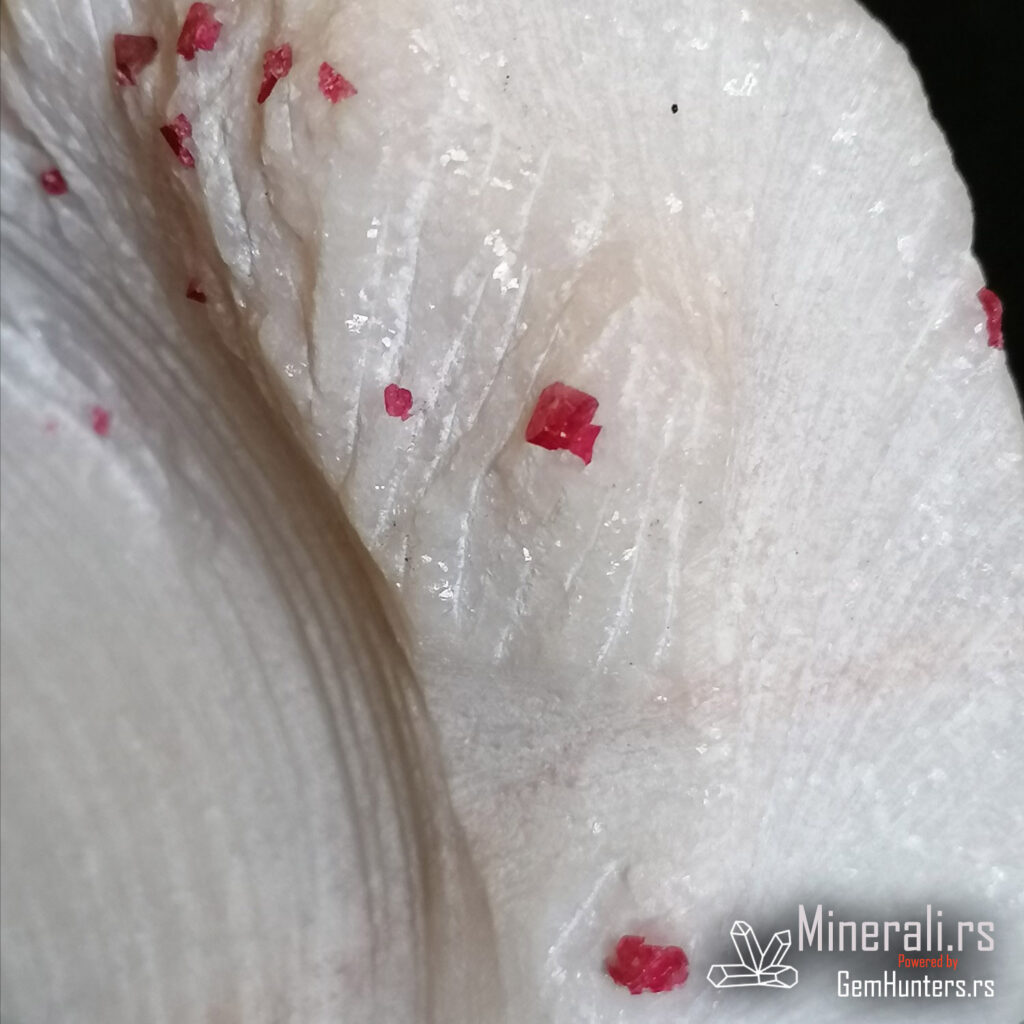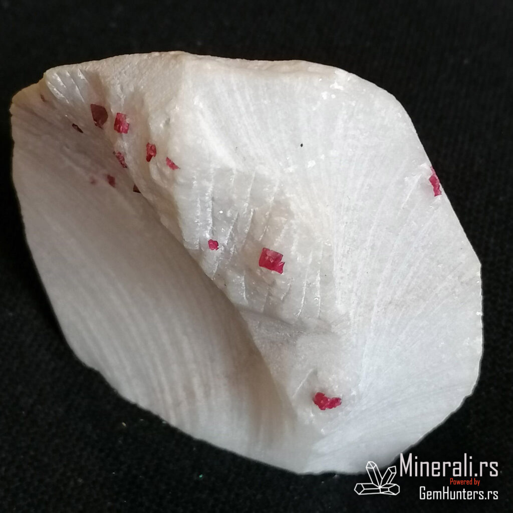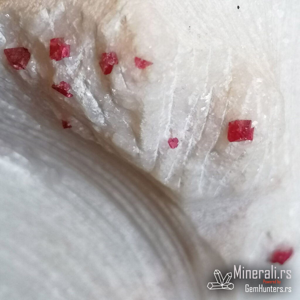 Kristali crvenog spinela u belom mermeru iz distrikta Luc Yen, Vijetnam