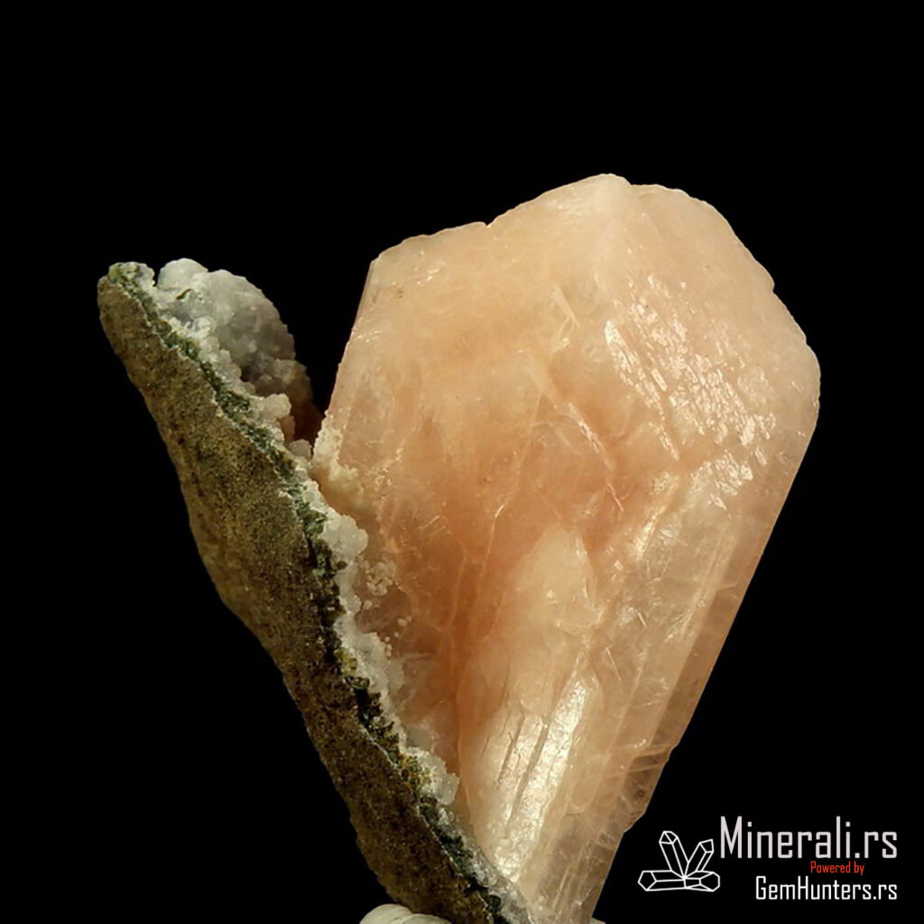 Stilbit iz Maharaštre jedan je od najpoznatijih predstavnika zeolita sa teritorije Indije. Maharaštra je globalno poznata po spektakularnim primercima zeolitnih minerala, naročito stilbita, heulandita, apofilita i klinoptilolita. Ovaj primerak prikazuje klasičan ružičasti kristal stilbita sa bisernim sjajem, smešten na tamnoj kontrastnoj podlozi.