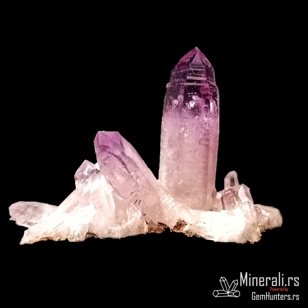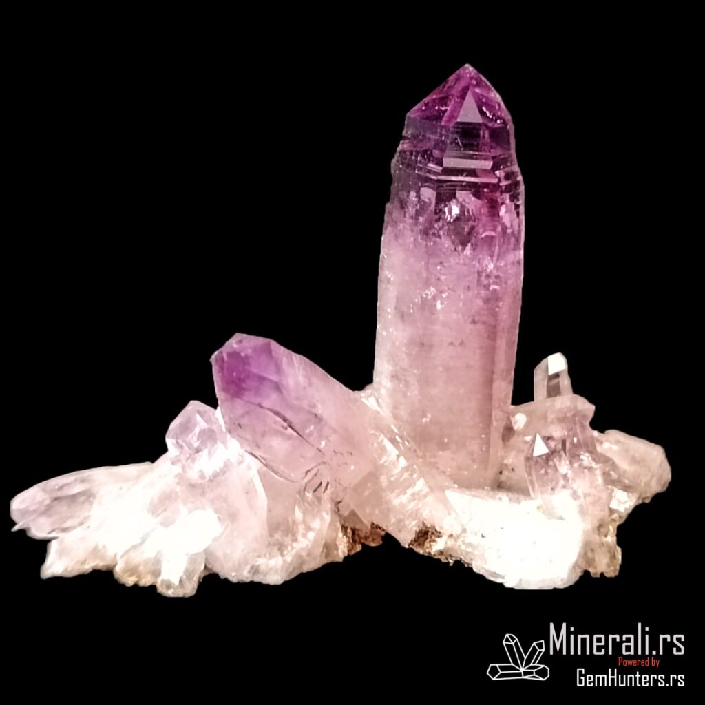 Ametist je ljubičasta forma minerala kvarca (SiO₂). Njegova boja potiče od prisustva tragova gvožđa (Fe³⁺) u strukturi i kasnijeg izlaganja gama zračenju tokom geološkog vremena. Boja je često zonirana – najintenzivnija je pri vrhovima kristala ispod romboedarskih površina, dok osnova može ostati gotovo bezbojna. Kristali iz Verakruza odlikuju se izuzetnom prozračnošću, izraženim staklastim sjajem i savršenim habitusom.