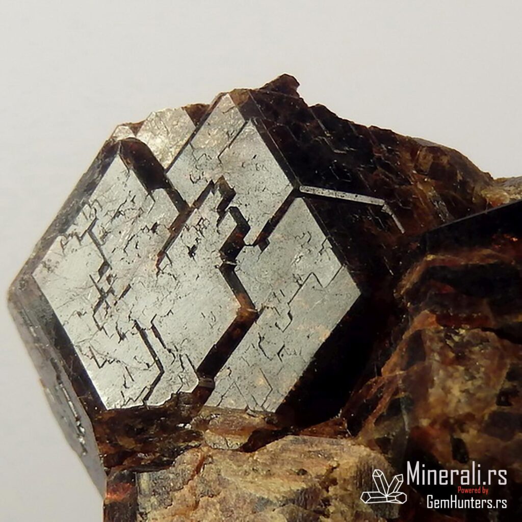 Kristal granata varijante hesonit sa metalnim licem i izraženom teksturom iz Kalifornije, SAD