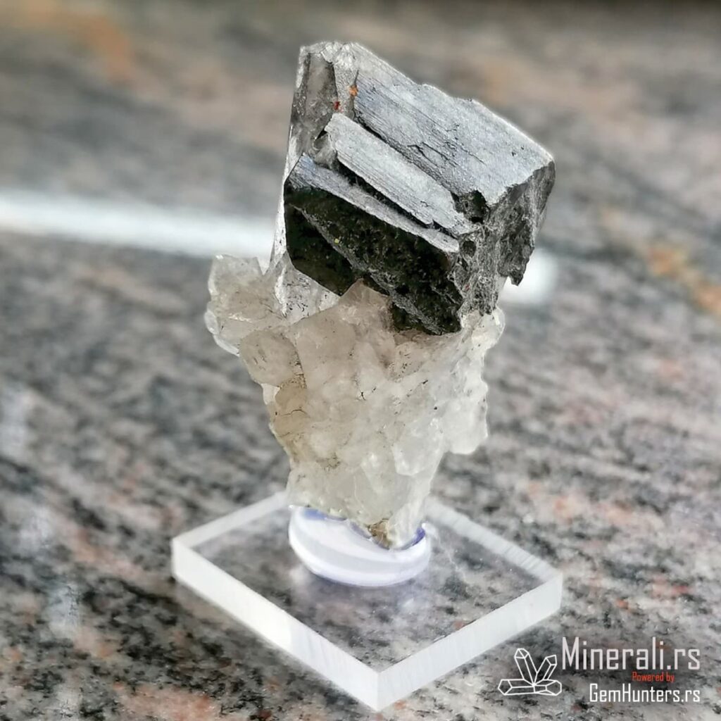 Hibnerit na kvarcu iz Perua predstavlja izuzetno vizuelno upečatljiv spoj dva kontrastna minerala sa lokaliteta Mundo Nuevo. Ovaj rudarski lokalitet poznat je po formiranju tamnih kristala hibnerita na beloj ili providnoj podlozi kvarca. Takvi primerci imaju visok estetski i edukativni potencijal, pa su traženi među kolekcionarima i geolozima širom sveta.