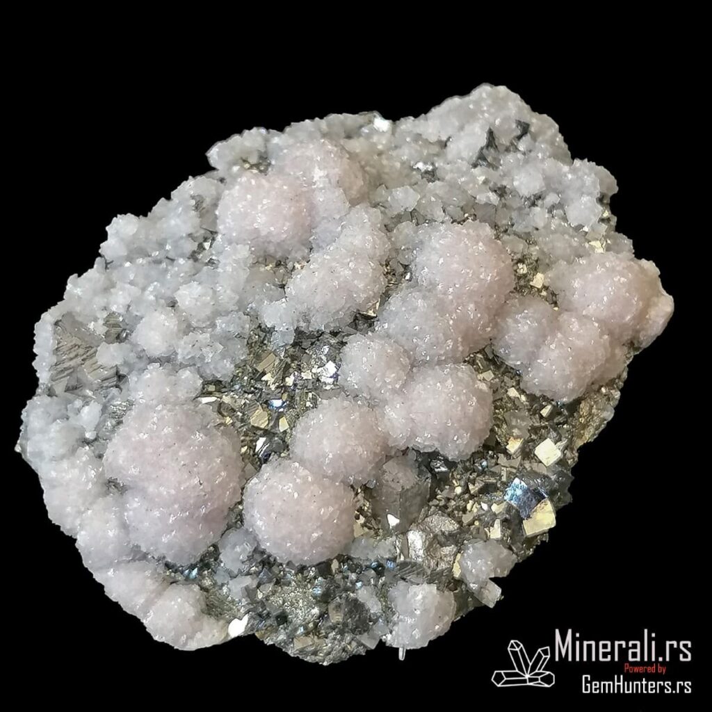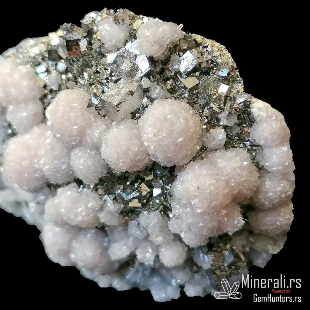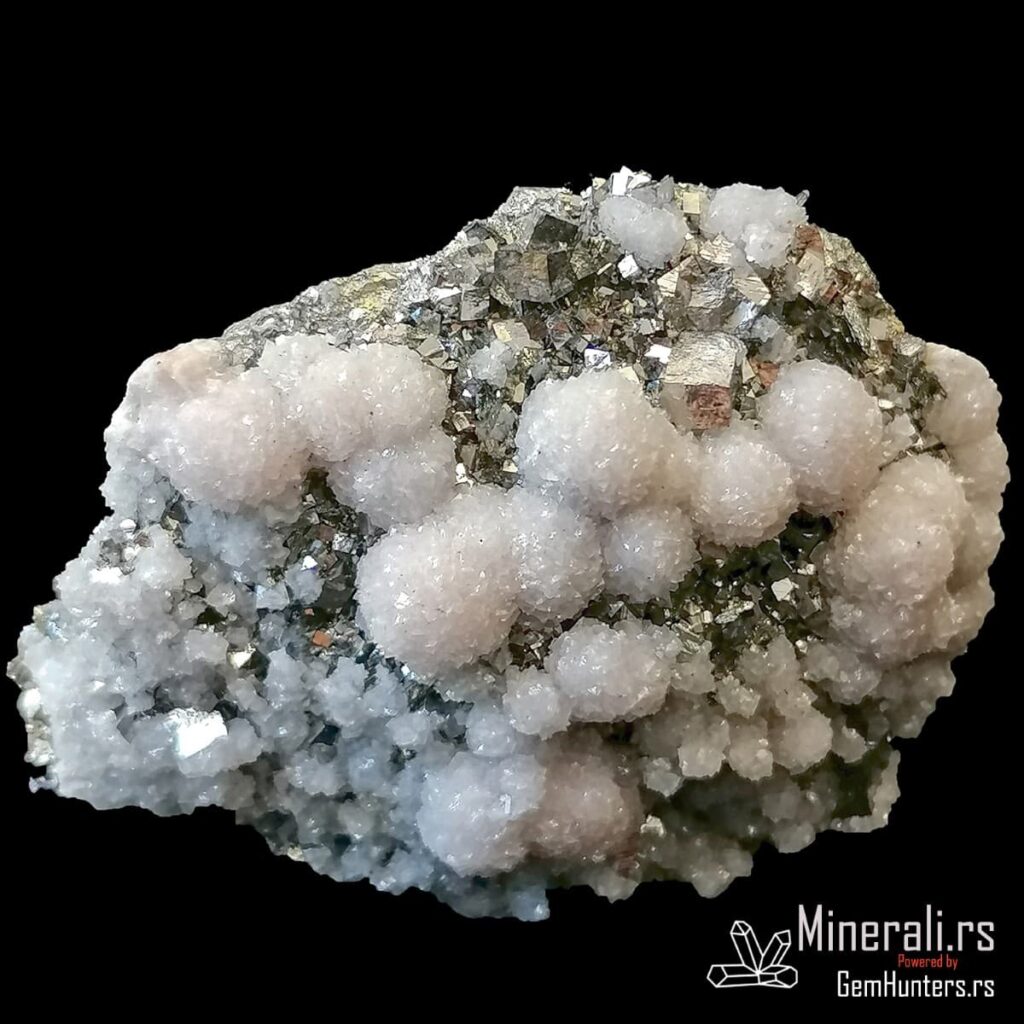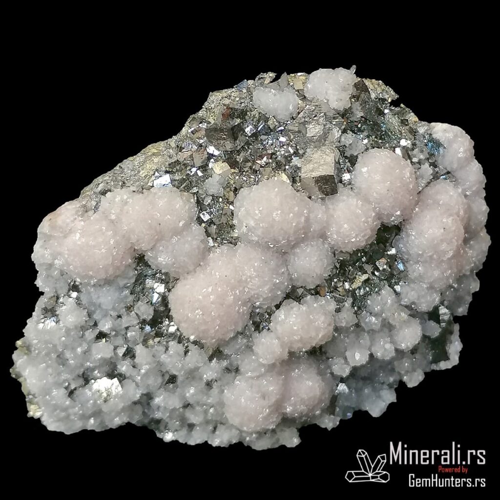 Arsenopirit iz Trepče je jedan od karakterističnih minerala ovog poznatog rudnog ležišta. Kristali arsenopirita su prepoznatljivi po svom metalnom sjaju, srebrnosivim tonovima i jasno izraženim prizmatičnim oblicima. U ovom uzorku, oni su u kontrastu sa sferoidnim agregatima kalcita mlečno bele boje, što čini kompoziciju vizuelno vrlo atraktivnom.