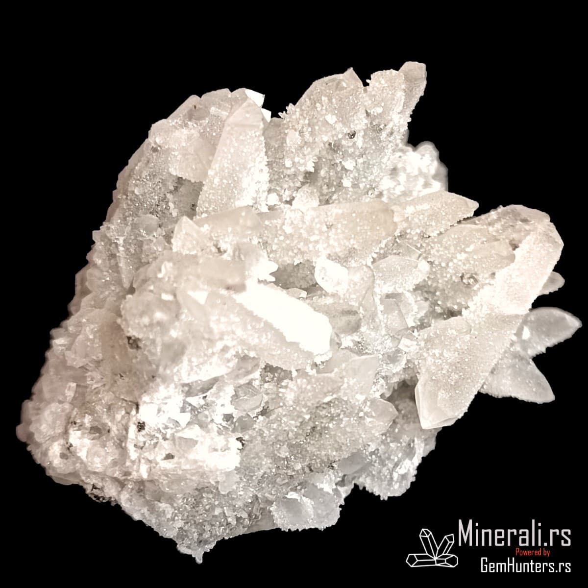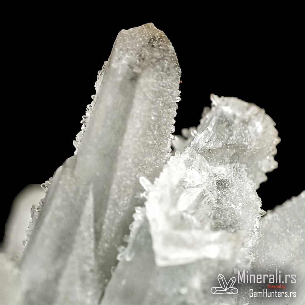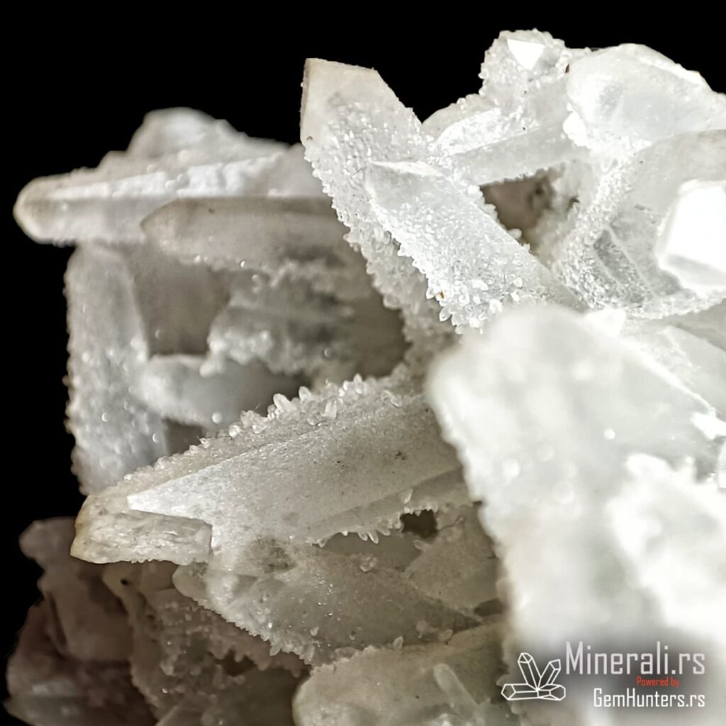Druza kvarca iz Bugarske predstavlja spektakularnu pojavu mikrokristala na većim prizmatčnim kristalima, stvarajući svetlucavu površinu nalik čipki. Ovaj primerak potiče iz rudarskog regiona Madan, poznatog po bogatim nalazištima sulfidnih i sekundarnih minerala. Druza kvarca iz Bugarske obično nastaje u šupljinama rudnih žila, u okruženju hidrotermalne mineralizacije.