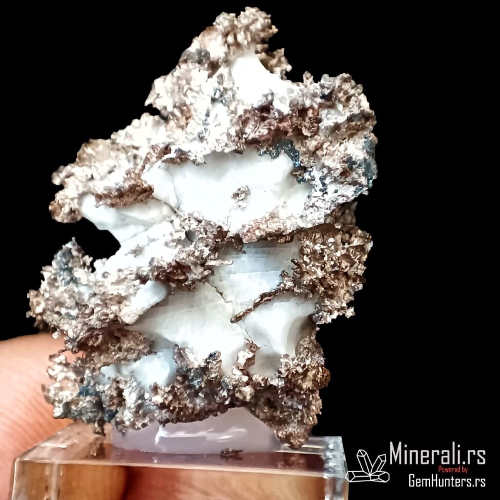 Srebro (Ag) je jedan od retkih metala koji se u prirodi može javiti u svom čistom obliku. Kristališe u kubnom sistemu, ali pravilni kristali su veoma retki. Umesto toga, češće se javlja u obliku žica, lamela ili spužvastih masa. Ima nizak stepen tvrdoće (oko 2.5), dok mu je specifična težina visoka – približno 10.5 g/cm³. Zbog toga je veoma težak za svoju veličinu. Takođe, srebro ima najjači metalni sjaj među svim mineralima.