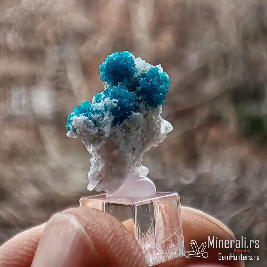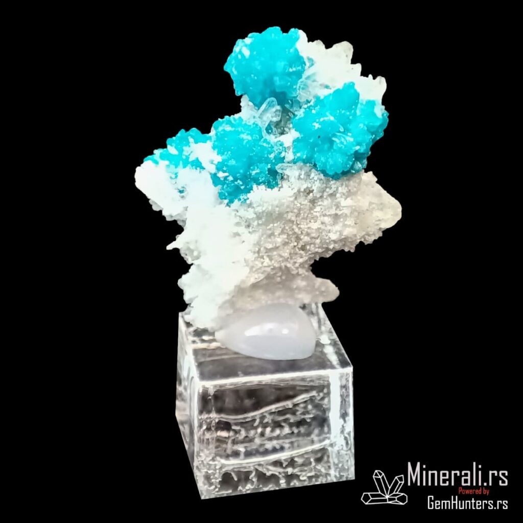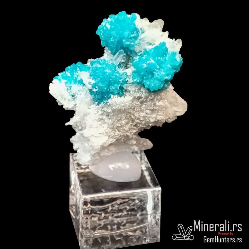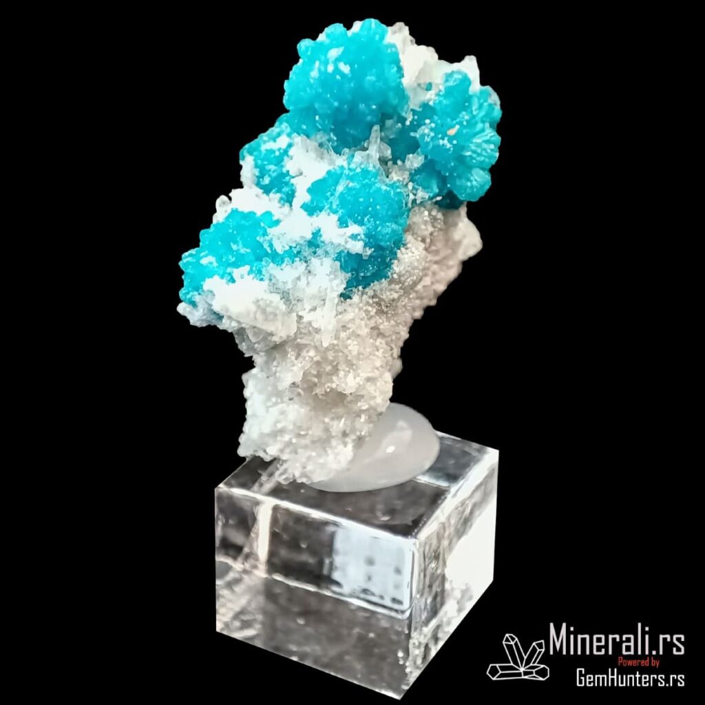 Kavansit iz Wagholija poznat je po svojoj intenzivno plavoj boji i kristalima koji formiraju cvetolike agregate u društvu sa zeolitima. Lokalitet Wagholi u okrugu Pune, Indija, deo je bazaltnih formacija Dekanske visoravni, koje su globalno poznate po bogatstvu sekundarnih minerala. Ovaj primerak kavansita iz Wagholija prikazuje radičaste kristale na kontrastnoj beloj podlozi stilbita.