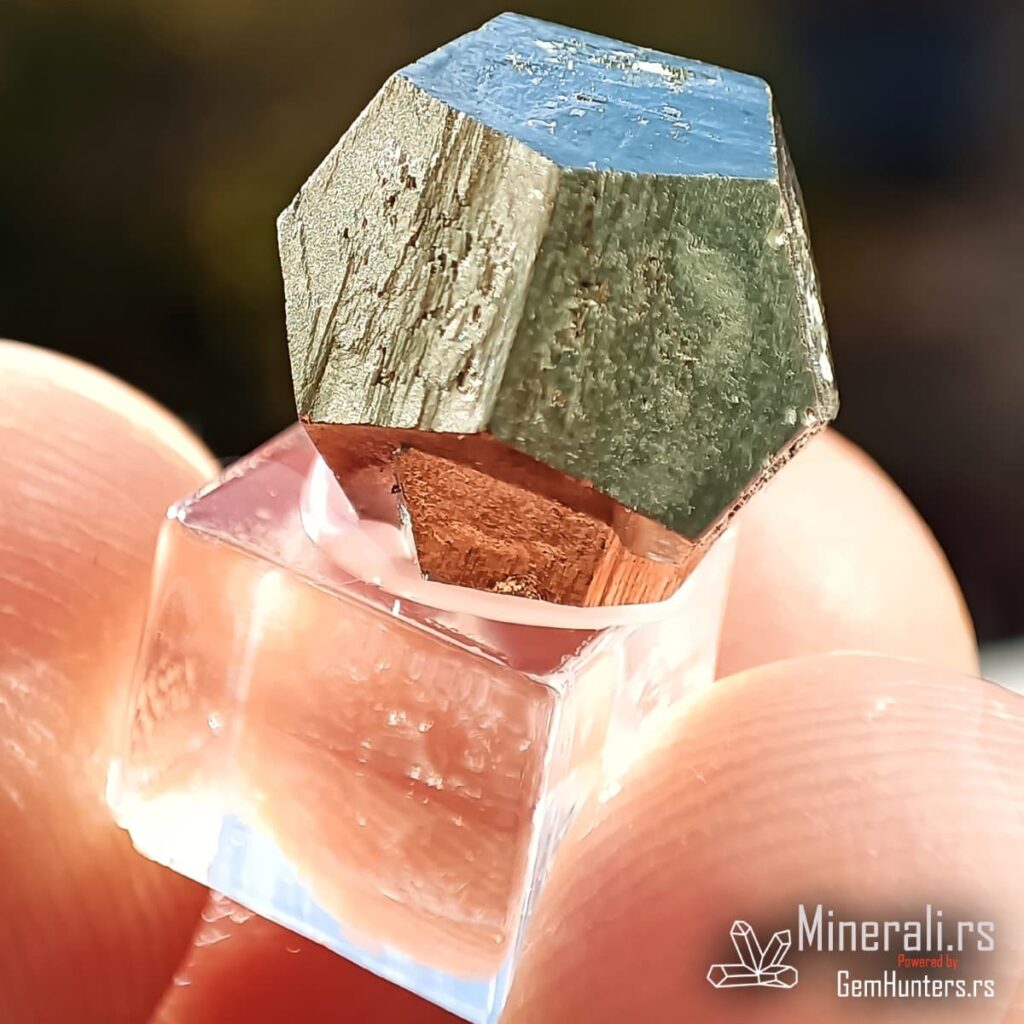 Pirit (FeS₂) je mineral iz grupe sulfida i najčešće kristališe u teseralnom sistemu, sa tipičnim oblicima kao što su kuboidi, pentagonski dodekaedri i heksaedri. Kristali mogu biti pojedinačni ili udruženi u složene agregate. Boja pirita je zlatnožuta, što često izaziva zabunu sa zlatom, zbog čega se u engleskom jeziku naziva “fool’s gold” (zlato za budale). Međutim, ogreb mu je zelenkasto-crn, a tvrd je i krhak, sa tvrdoćom oko 6 po Mosovoj skali.
