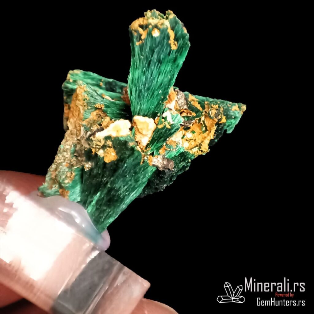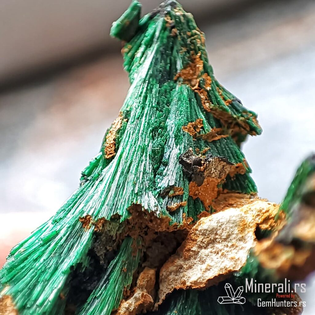 Vlaknasti kristali malahita iz Kerrouchena u Maroku sa jasno izraženim radijalnim rastom