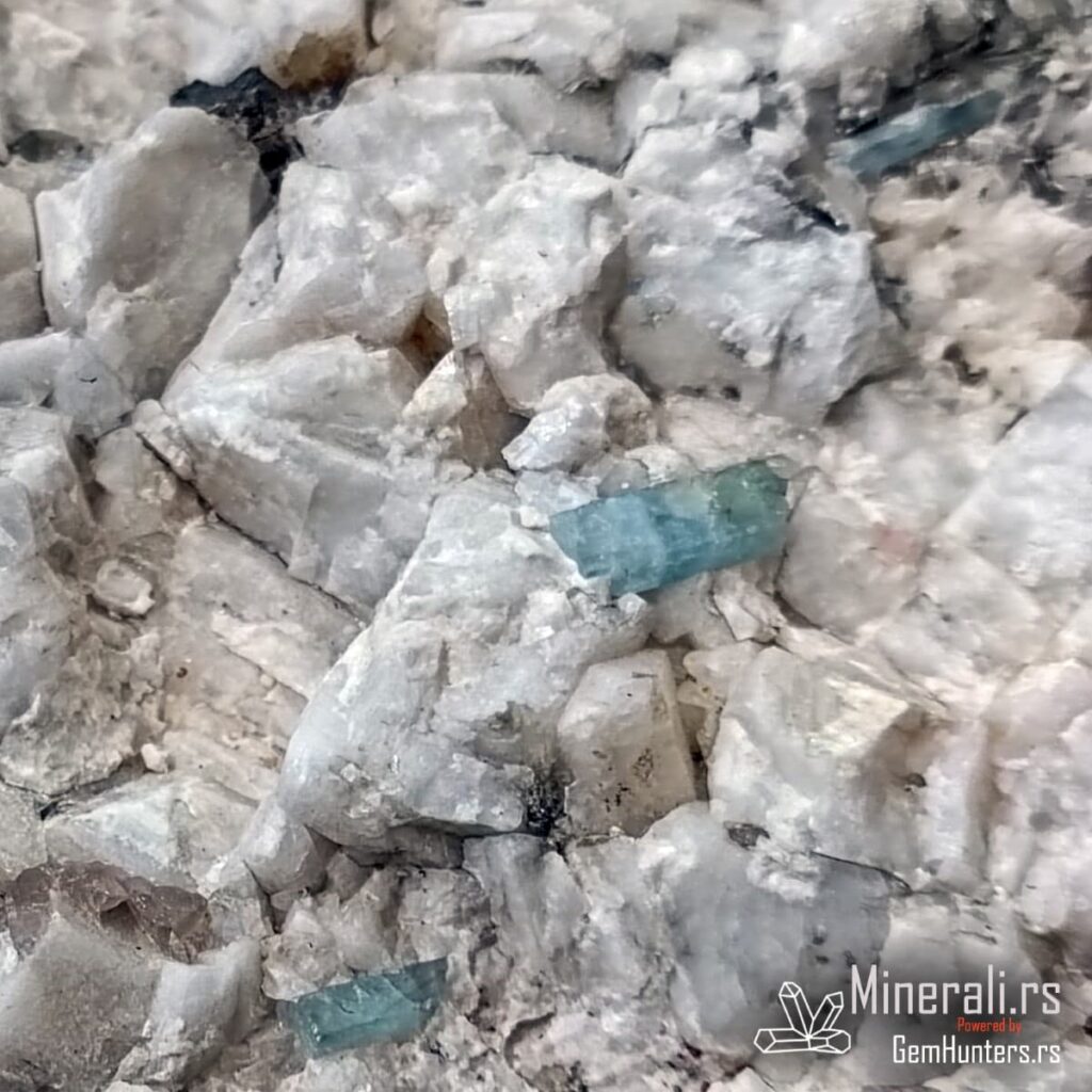 Albitična matrica u kojoj je akvamarin sa Cera ugrađen predstavlja tipičan primer pegmatitskog paragenetskog sklopa. Albit je natrijumov feldspat bele do sivkaste boje, često sa izraženom lamelarnom teksturom. Ta tekstura dodatno doprinosi stabilnosti uzorka i naglašava prirodni kontrast između minerala.