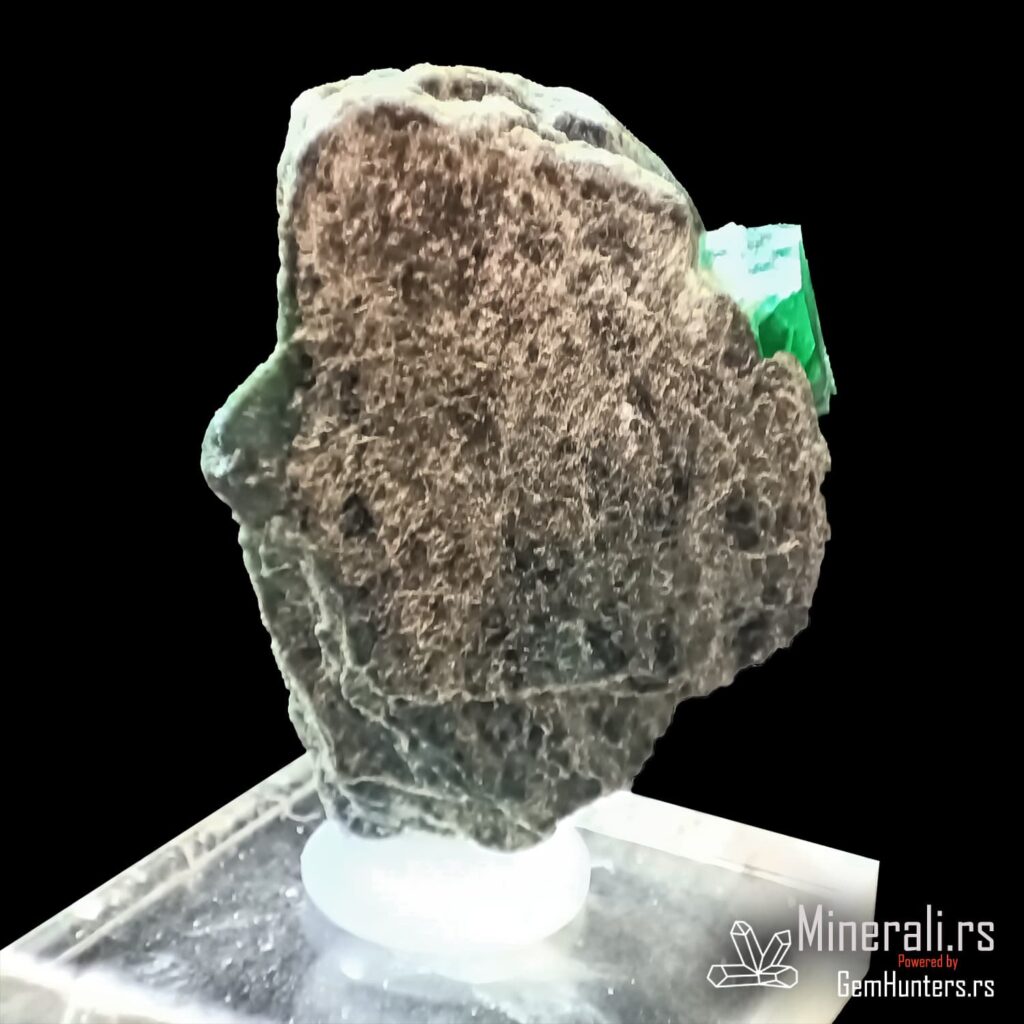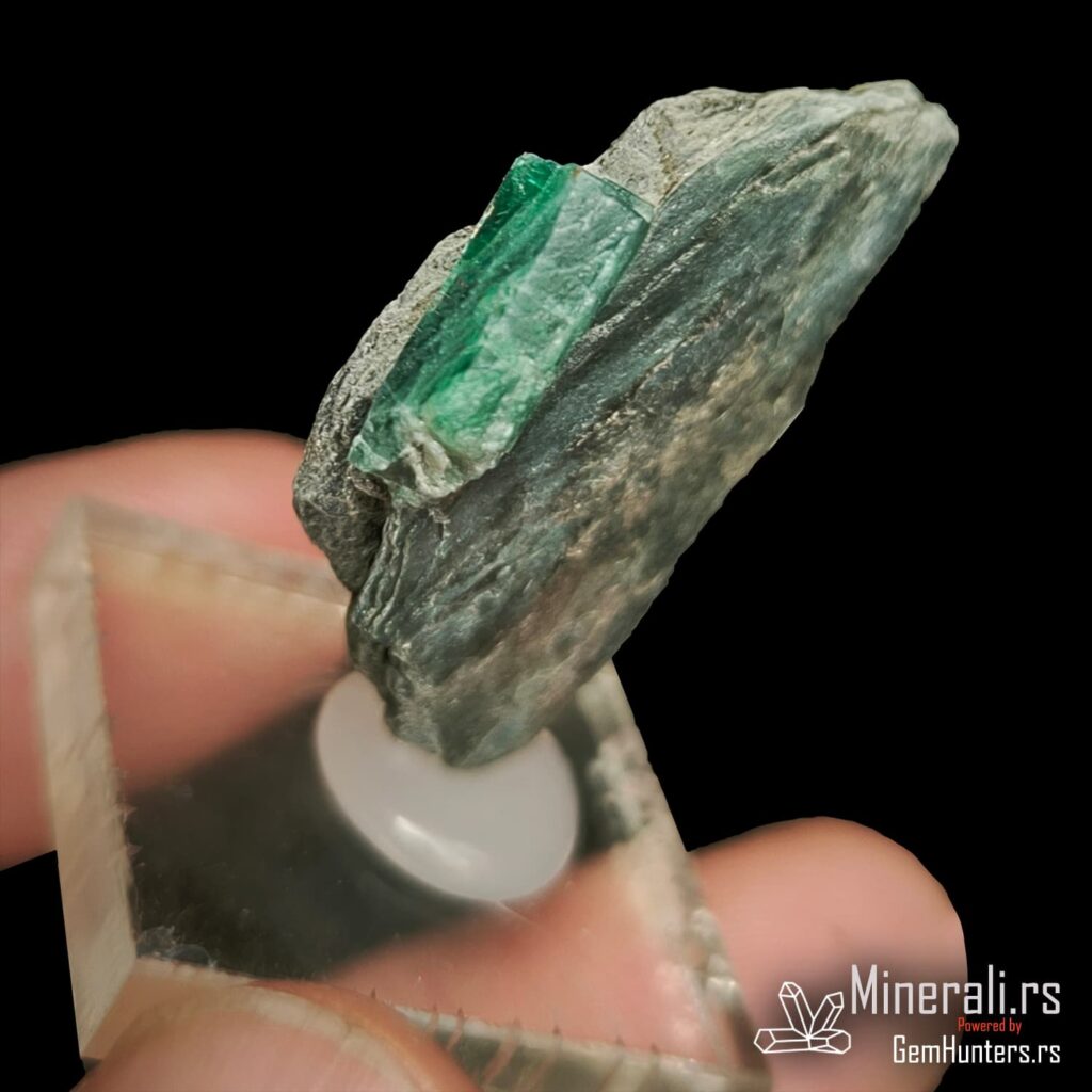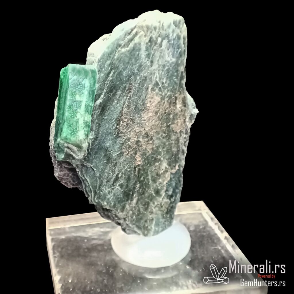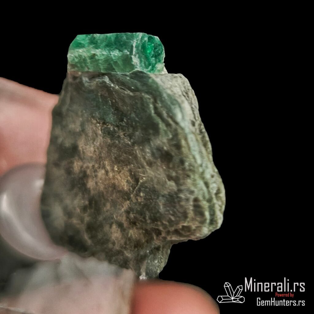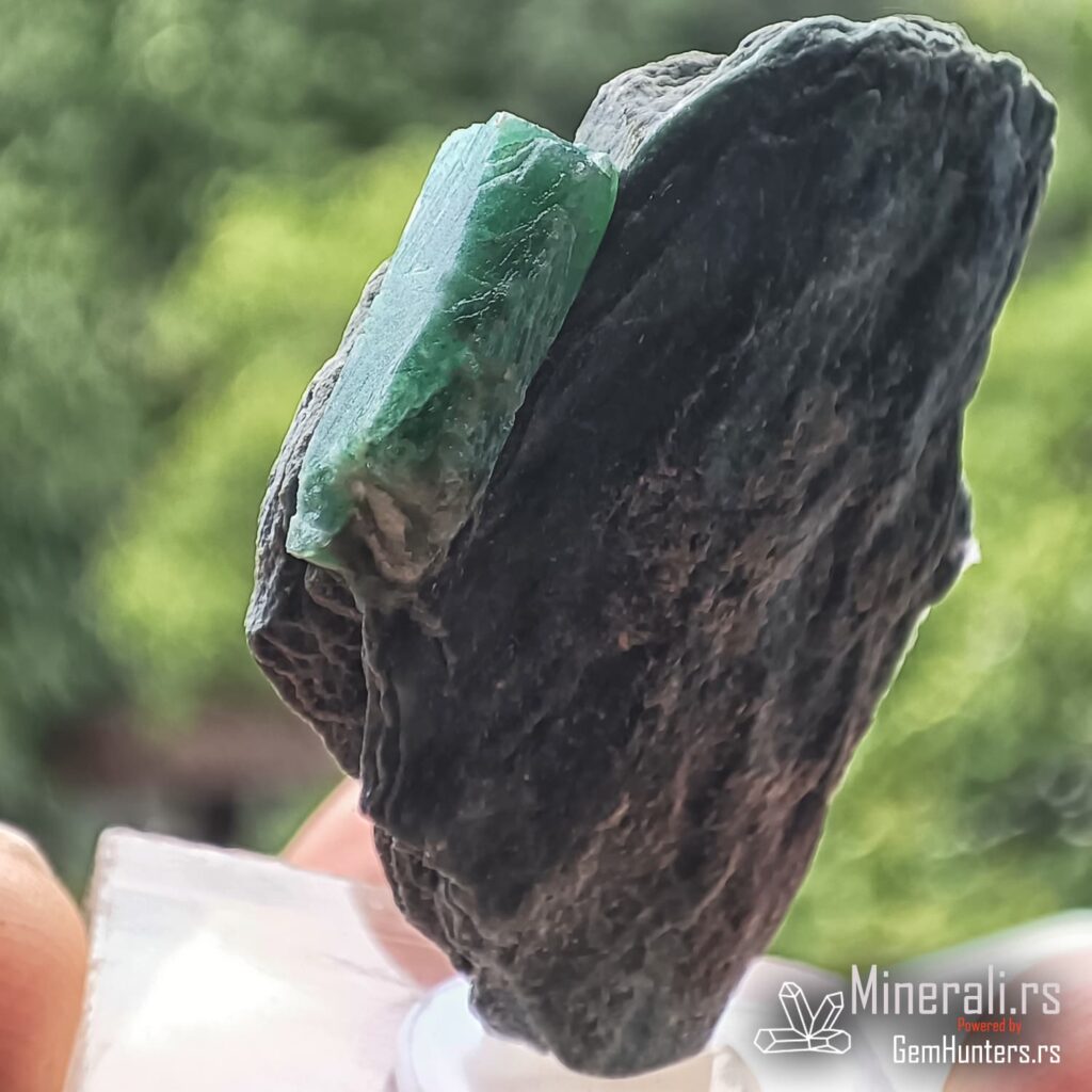 Smaragd iz Habachtala predstavlja jedan od retkih evropskih izvora ovog dragog kamena. Habachtal, dolina u austrijskim Alpima, poznata je po nalazištima smaragda koji se javljaju u kontaktno-metamorfnim zonama između škriljaca i ultramafitskih stena. Uzorci iz ovog lokaliteta često su ugrađeni u muskovitne matrice, kao što je i prikazani primer, što dodatno naglašava prirodnost njihovog porekla.