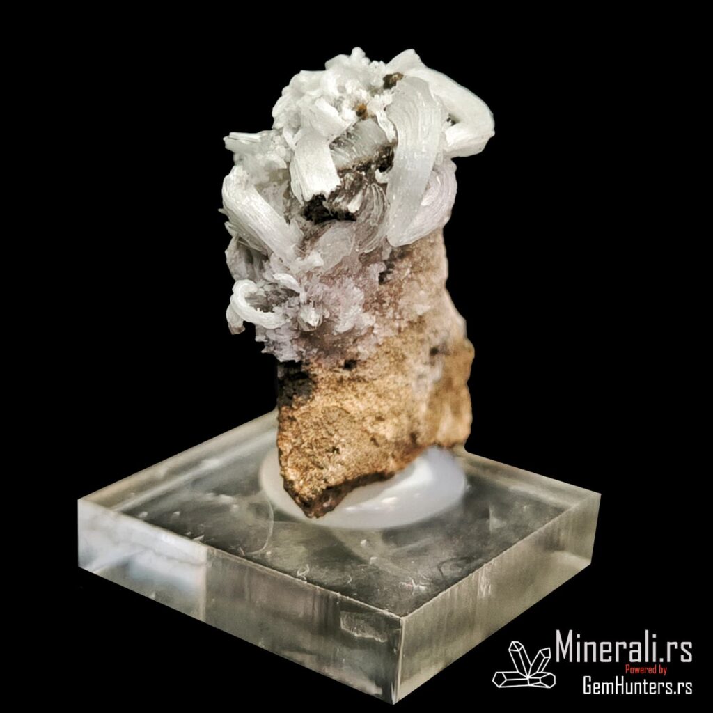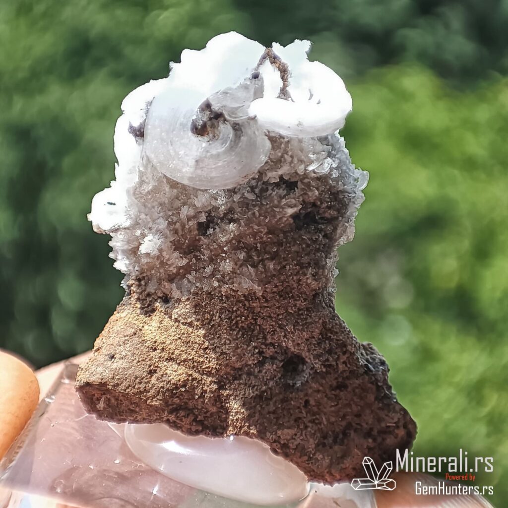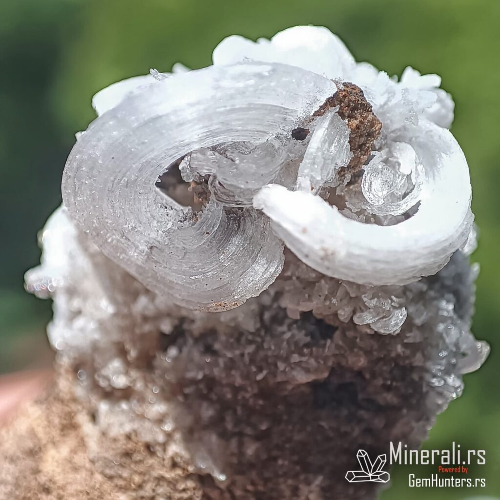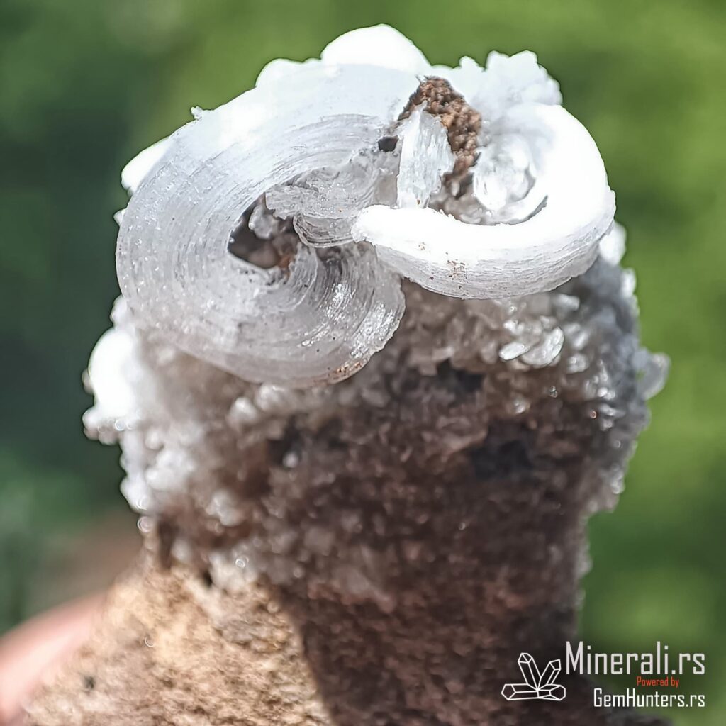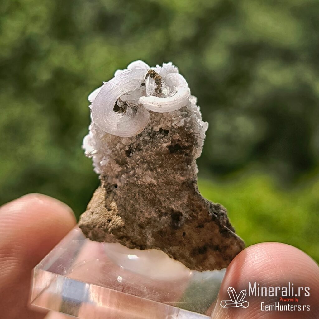 Gips iz Touissita jedan je od najlepših i najneobičnijih oblika ovog minerala iz Maroka. Touissit, poznat po rudarskom okrugu bogatom olovom i cinkom, daje izuzetne primerke gipsa, uključujući retke spiralne formacije poput prikazane. Ovakav oblik gipsa nije samo retkost već i pravi kolekcionarski dragulj, prepoznatljiv po nežnim zakrivljenjima, bisernom sjaju i estetskoj eleganciji.