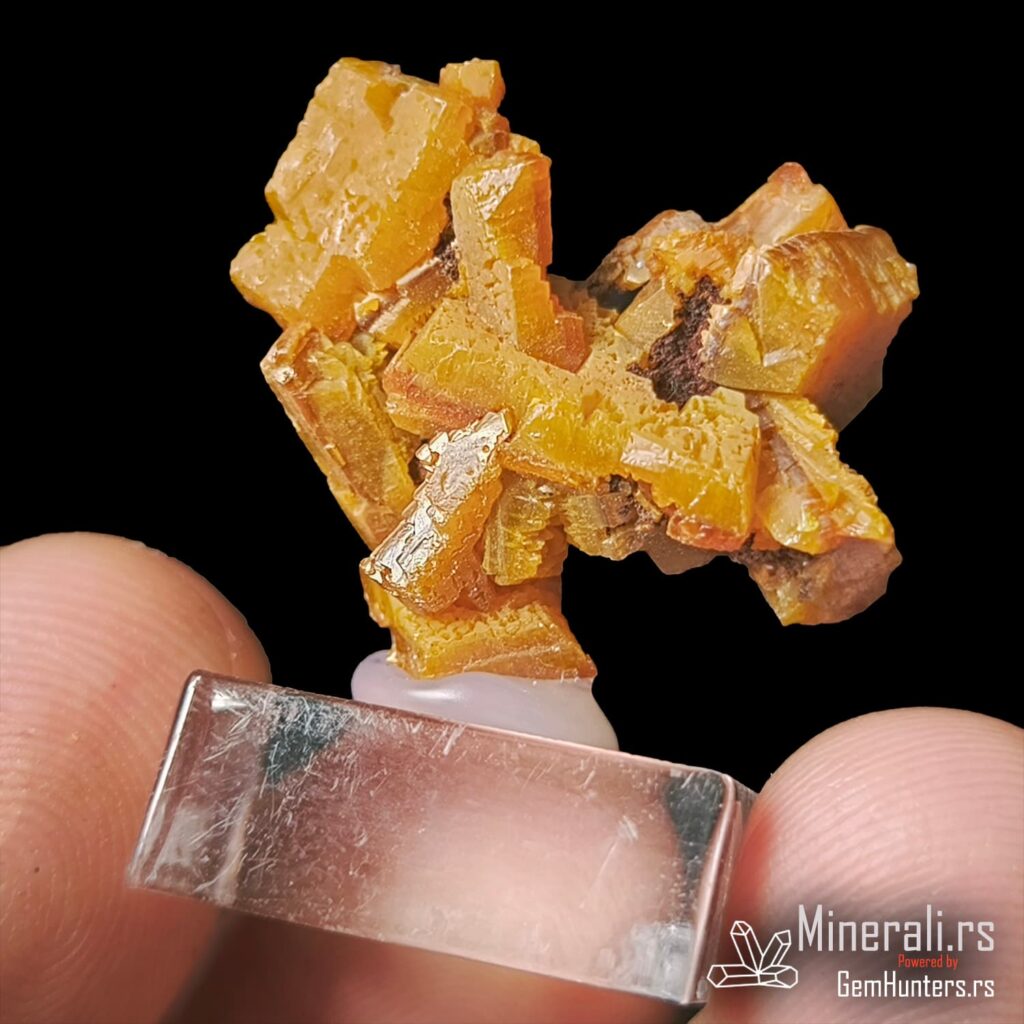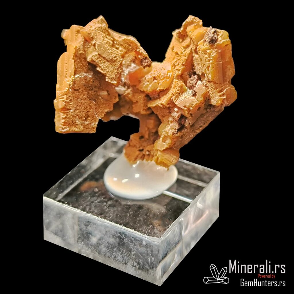 Vulfenit kristal iz Slovenije predstavlja jedan od vizuelno najupečatljivijih minerala u kolekcionarskom svetu. Ovaj sekundarni mineral, hemijske formule PbMoO₄, kristalizuje u tetragonalnom sistemu i karakteriše se jarko narandžastim, tabularnim kristalima koji privlače pažnju svojim oblikom i intenzitetom boje.