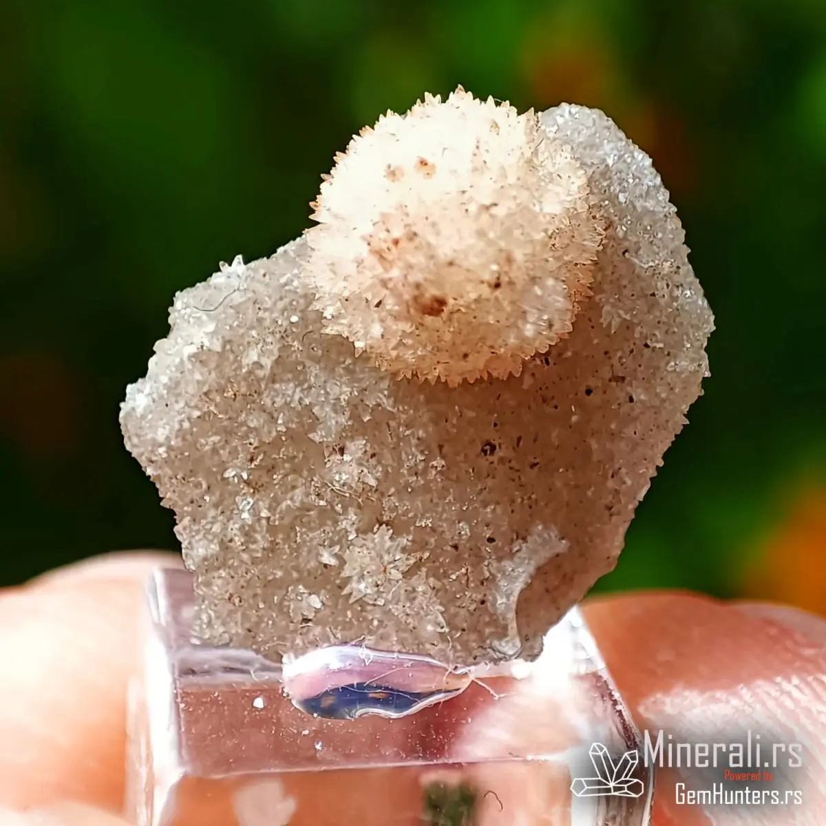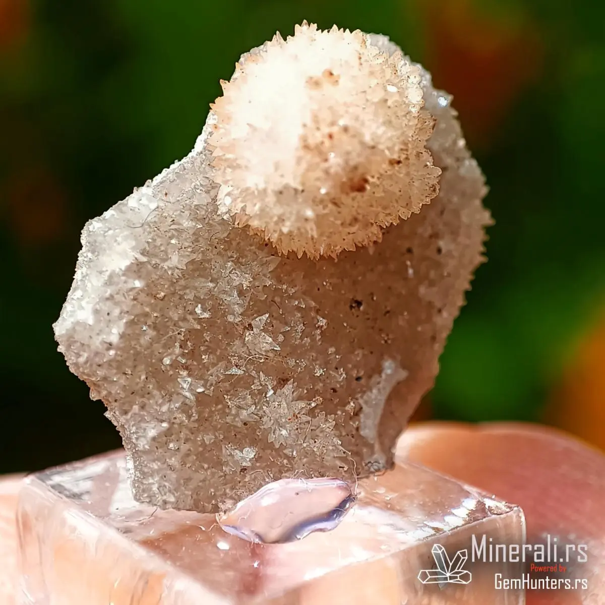 Aragonit Halanzy Belgija ubraja se među estetski najzanimljivije primerke ovog minerala u Evropi. Ovaj uzorak potiče iz rudnika gvožđa Halanzy (Aubange, Valonija), lokaliteta poznatog po sferolitnim agregatima svetlih boja. Oni nastaju u oksidacionim zonama rudnih tela bogatih gvožđem, a primerci su često dekorativni i visoko cenjeni među kolekcionarima. Ovaj uzorak prikazuje beli sferolit na podlozi sitnih kristala aragonita. Kao rezultat takve kombinacije, kontrast boja i tekstura čini primerak posebno upečatljivim.